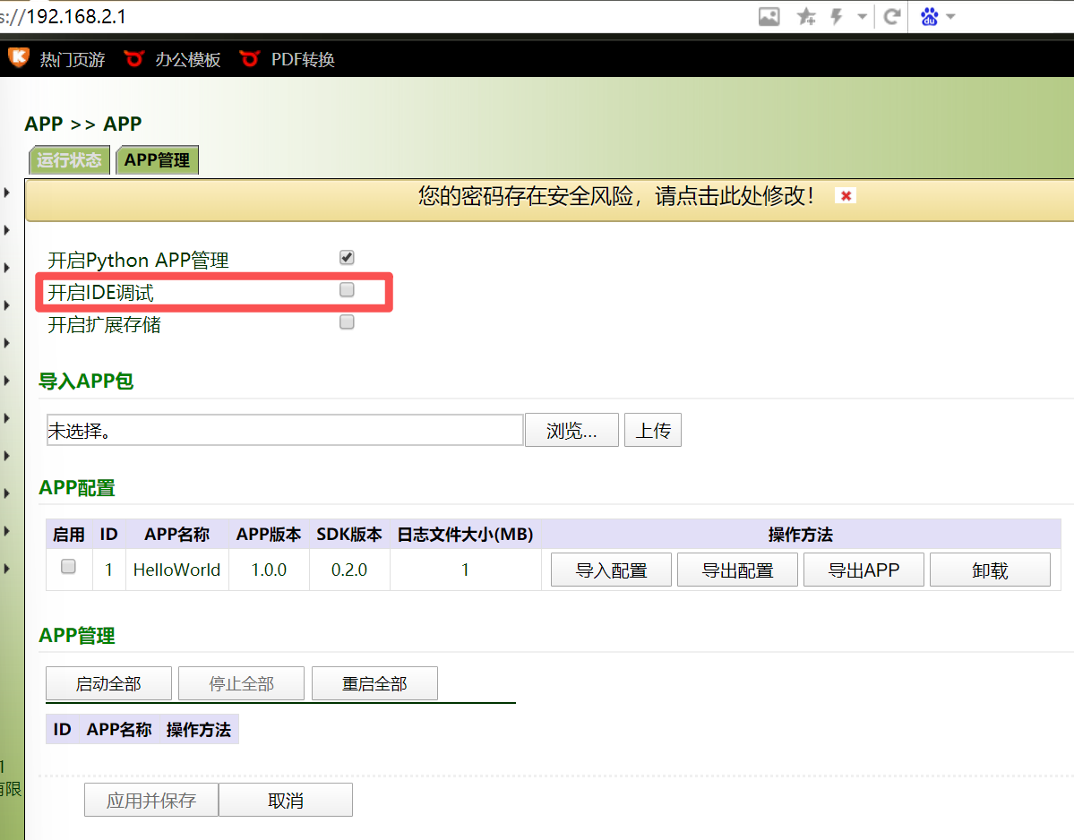 通过设置开启python APP管理、开启IDE调试后,可以访问。