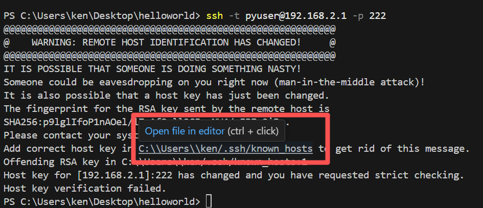 VG710 SSH访问显示密钥验证失败问题 yanggeng 笔者为深圳信息职业技术大学智能无人系统校企联合研发中心主任,用映翰通设备开发出了一系列行业软硬件一体化应用系统,欢迎大家来合作,联系微信beyond_geng,邮箱:yangg@sziit.edu.cn 0 人点赞了该文章 · 65 浏览 当很久没有访问,出现密钥验证失败问题时,如下图所示此时只需要点击图中文件位置并打开然后把文件里面的内容删除并保存即可