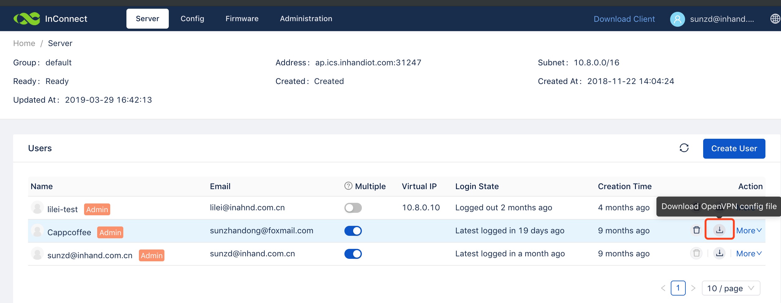 3. 下载配置文件,并导入到Centos 系统的 /etc/openvpn/client 文件文件夹
