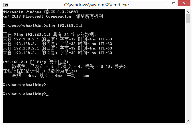 L2TP 客户端下联PC ping L2TP服务器LAN端口。