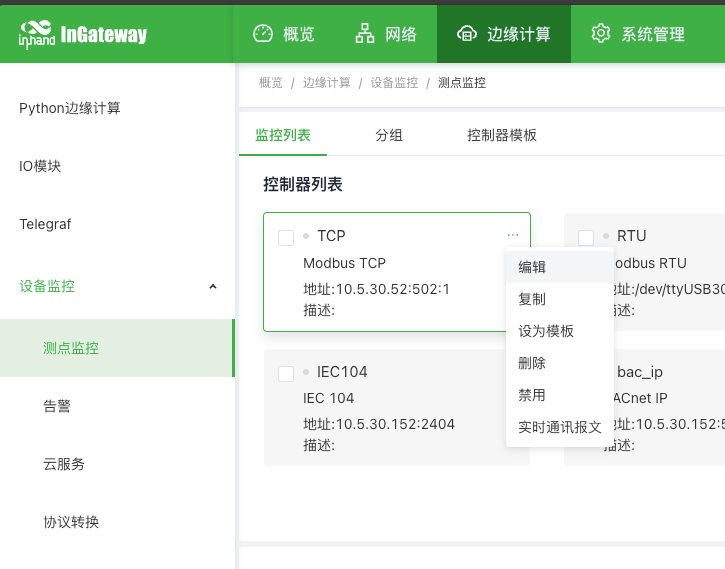 请问下您使用的控制器的型号,使用的协议,点表是怎样的,控制器参数和测点如何设置的 ?