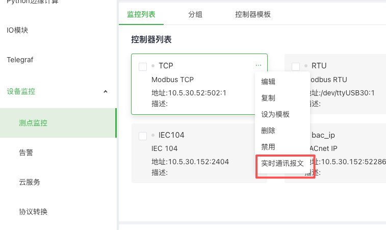 - DSA 支持在线查看、下载南向控制器的实时通讯报文,方便定位是“发不出去”还是“有请求无响应”。